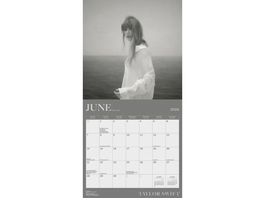 Oficiální produkt - nástěnný dvanáctiměsíční kalendář s licencí zpěvačky Taylor Swift na rok 2026.