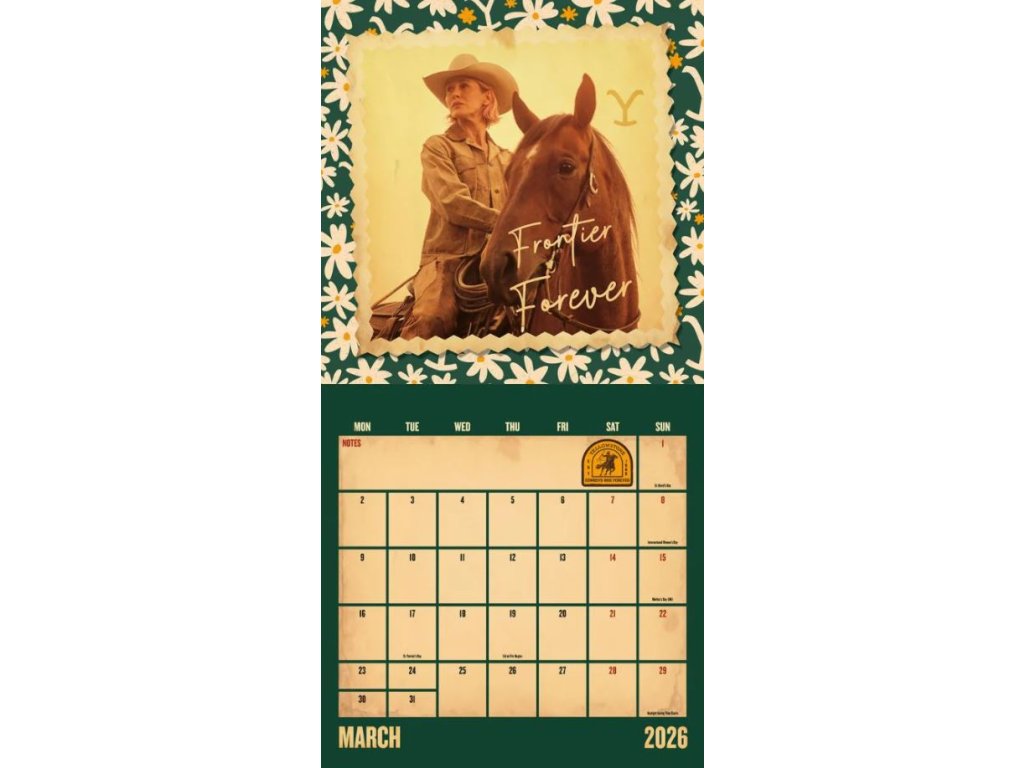 Oficiální nástěnný dvanáctiměsíční kalendář na rok 2026 s licencí Amerického televizního seriálu Yellowstone.