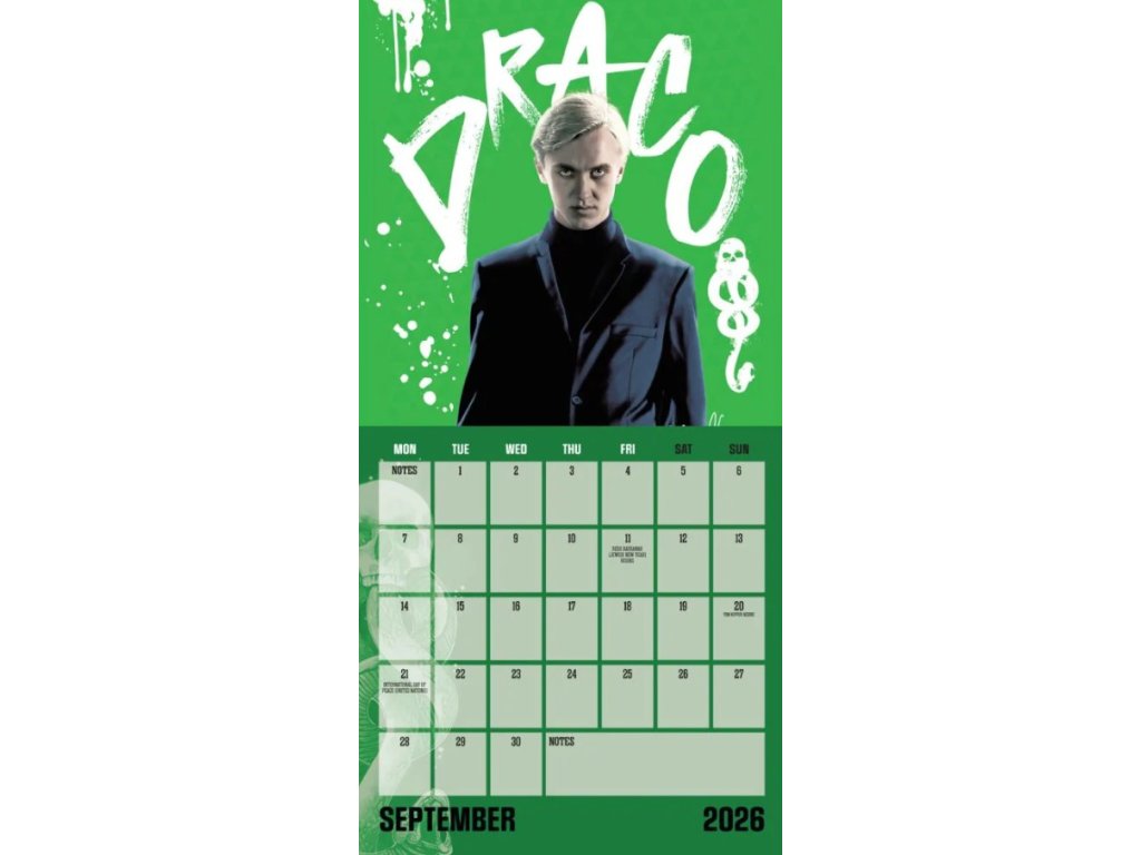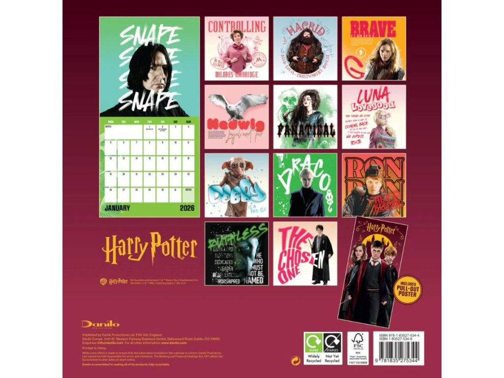 Oficiální produkt - nástěnný dvanáctiměsíční mini kalendář na rok 2026 s licencí kouzelnické literární a filmové ságy Harry Potter.