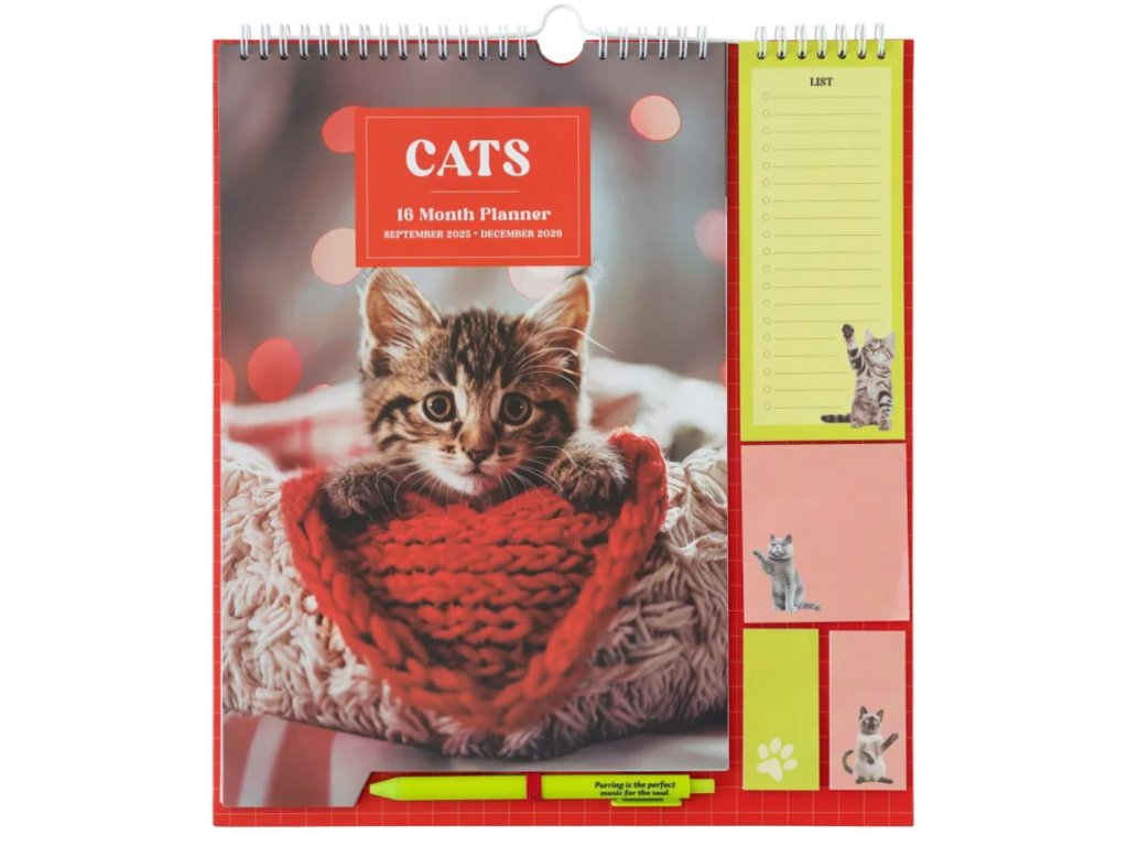 Oficiální produkt - šestnáctiměsíční plánovací kalendář a organizér z katalogu výrobků na rok 2025/2026 s licencí a grafikou roztomilých koček.