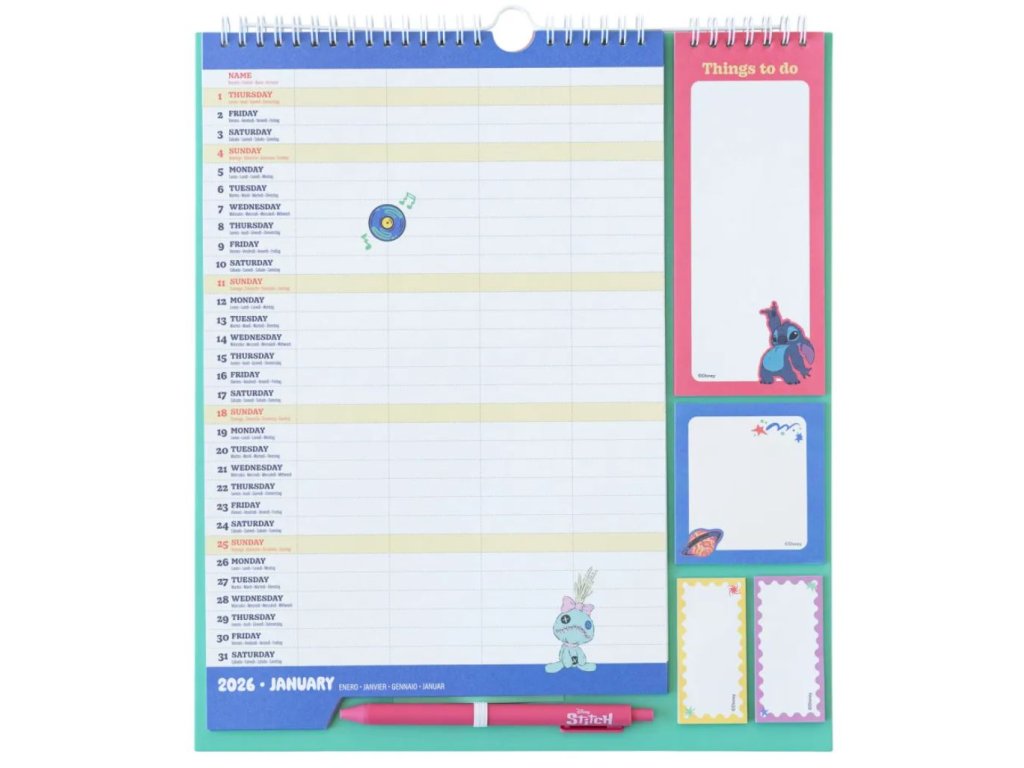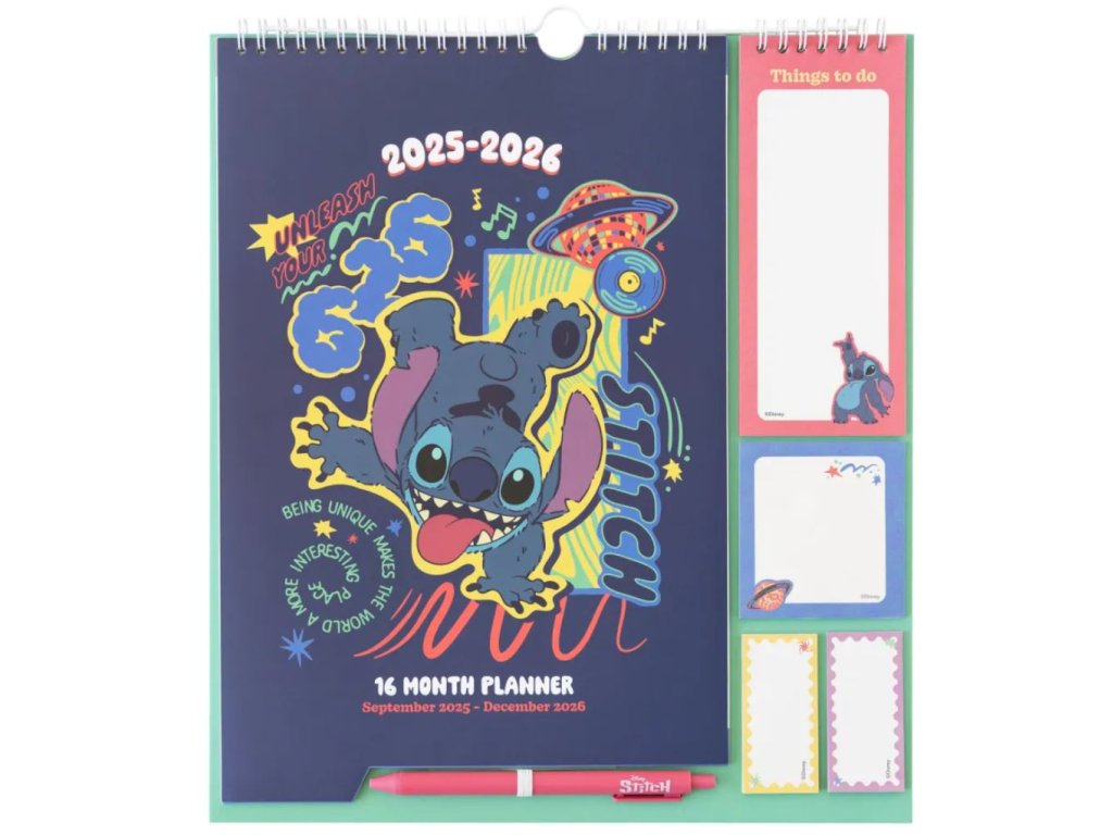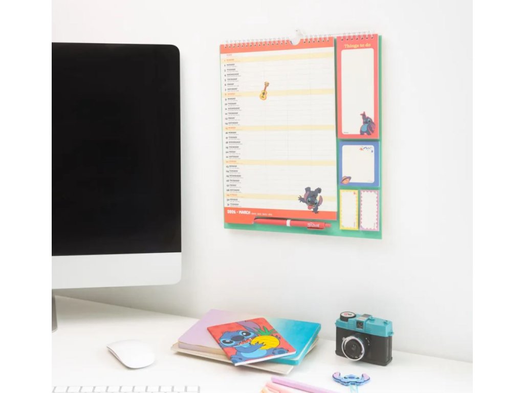Oficiální produkt - šestnáctiměsíční plánovací kalendář a organizér z katalogu výrobků studia Disney na rok 2025/2026 s licencí a grafikou Lilo & Stitch.