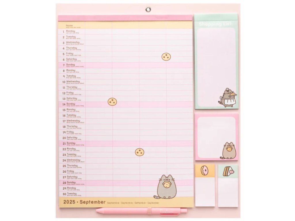Oficiální produkt - nástěnný kalendář a organizér na 16 měsíců období 2025/2026 z katalogu zboží s grafikou a licencí Pusheen.