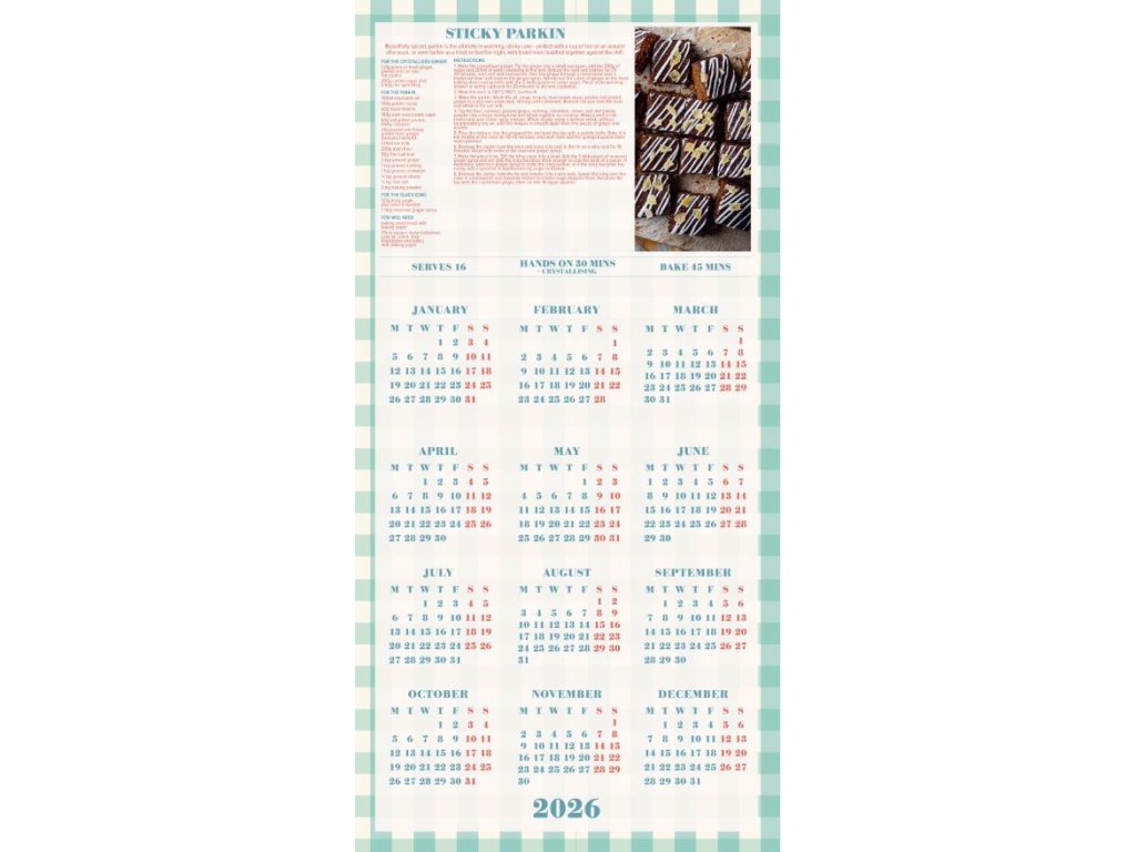 Oficiální produkt - dvanáctiměsíční nástěnný plánovací kalendář a organizér na rok 2026 s licencí televizní soutěže The Great British Bake Off.