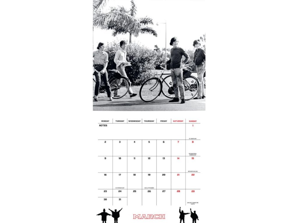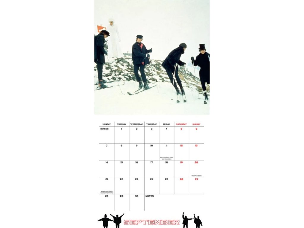 Nástěnný kalendář čtvercového square formátu (30,5 x 30,5 cm), provedený jako LP vinylová deska s celkem 12 fotografiemi a grafickými obrázky k albu Beatles.