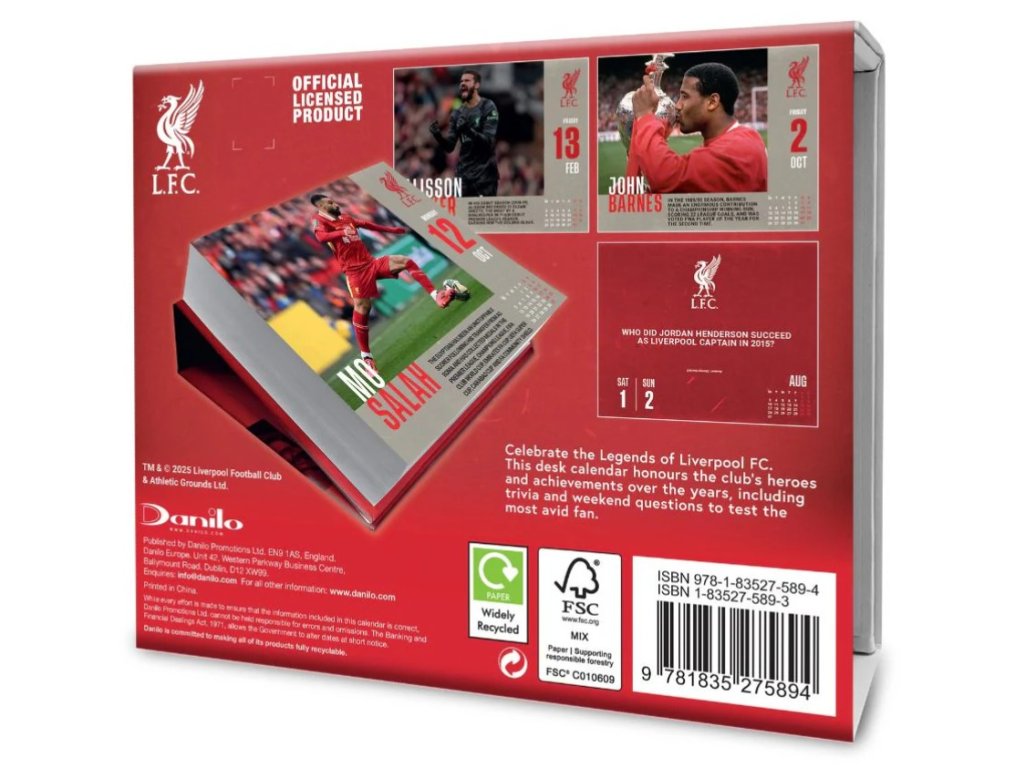 Oficiální produkt - denní stolní trhací kalendář na rok 2026 s grafikou a licencí populárního fotbalového týmu FC Liverpool.