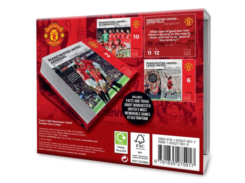 Stolní trhací kalendář formátu s celkem 365 obrázky a fotografiemi populárního fotbalového týmu FC Manchester United. Začínat každý den s úplně novým obrázkem určitě potěší všechny fotbalové fanoušky. Nový den = nová výzva!