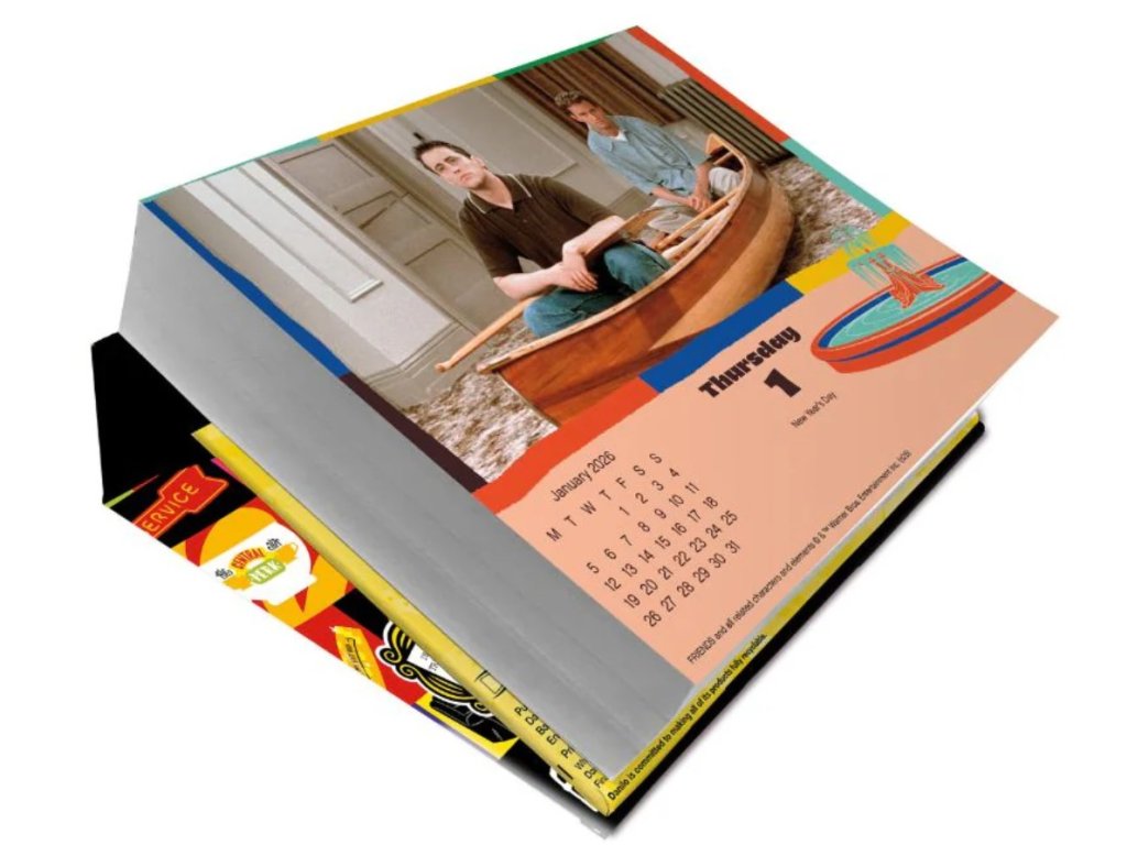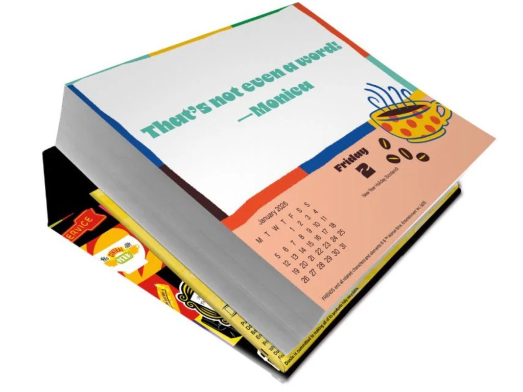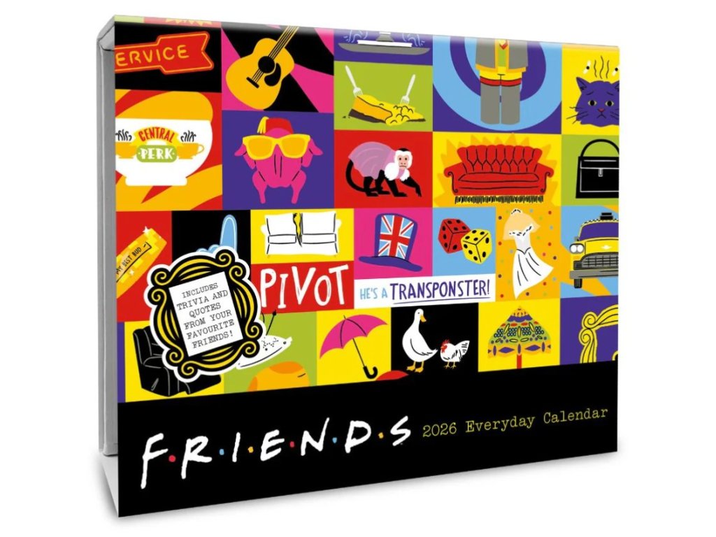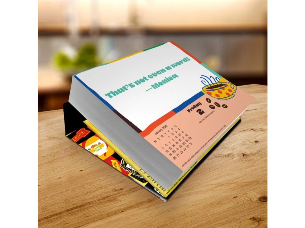Oficiální produkt - denní stolní trhací kalendář na rok 2026 s grafikou a licencí populárního televizního seriálu Friends (Přátelé).