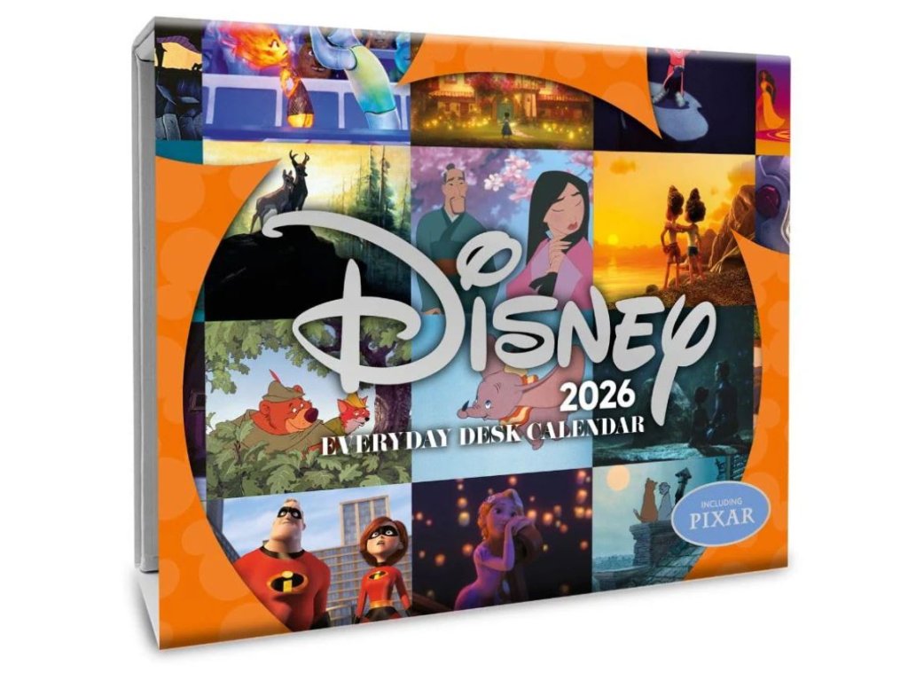 Oficiální denní stolní trhací kalendář studia Disney na rok 2026 s licencemi animovaných postaviček dětských filmových hrdinů.