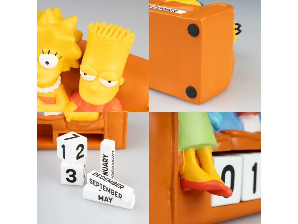 3D věčný kalendář vyrobený z pryskyřice a ručně malovaný v plné barvě. Kalendář je vyvedený do grafiky hlavních postav z kresleného seriálu Simpsonovi. Kalendář obsahuje 5 bloků se dny a měsíci, které lze vyměňovat a kombinovat pro konfiguraci všech možných dat stejného roku.