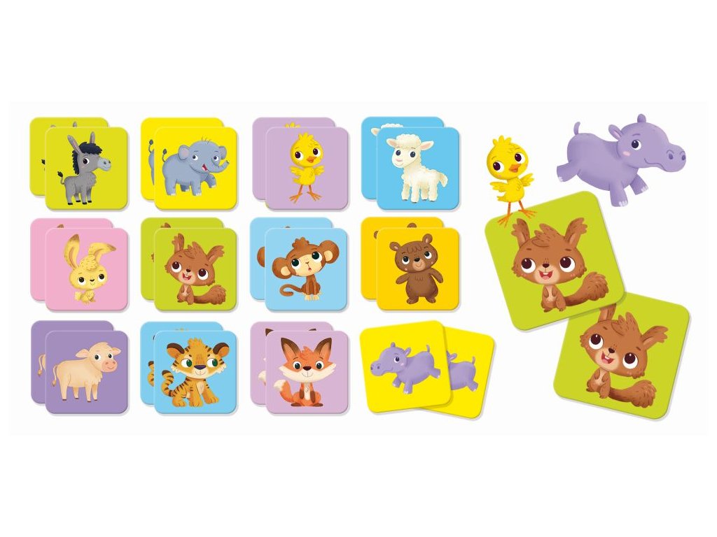 Pexeso s motivy veselých dinosaurů. Zábavná hra, která procvičuje představivost, soustředění a paměť dítěte. Vyrobeno z bezpečných materiálů vhodné pro děti od 1 roku. Sada obsahuje 24 dílků.