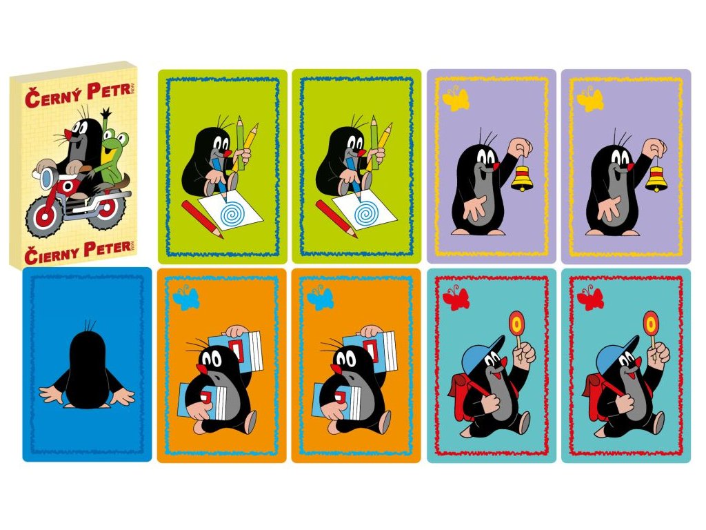 24 karet + karta s černým Petrem + karta s návodem ke hře , materiál krabičky i karet pevný karton s lesklou povrchovou úpravou-voděodpudivá, krabička papírová z důvodu tradice i bezpečnosti dětí, na výrobek byla udělena ocenění "česká kvalita" a "bezpečná a kvalitní hračka"