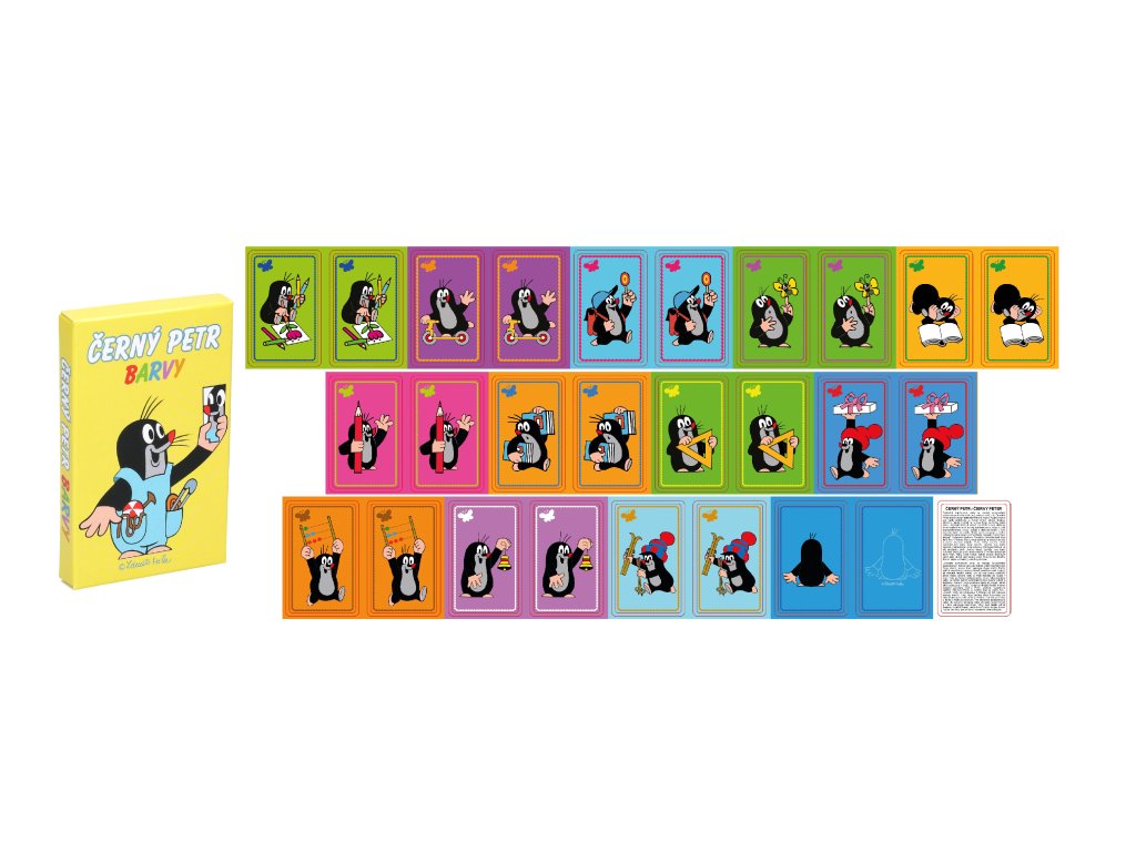 Černý Petr barvy. Klasická kartová hra. Obsahuje 31 karet a návod. 10,5x6,5x1,5cm