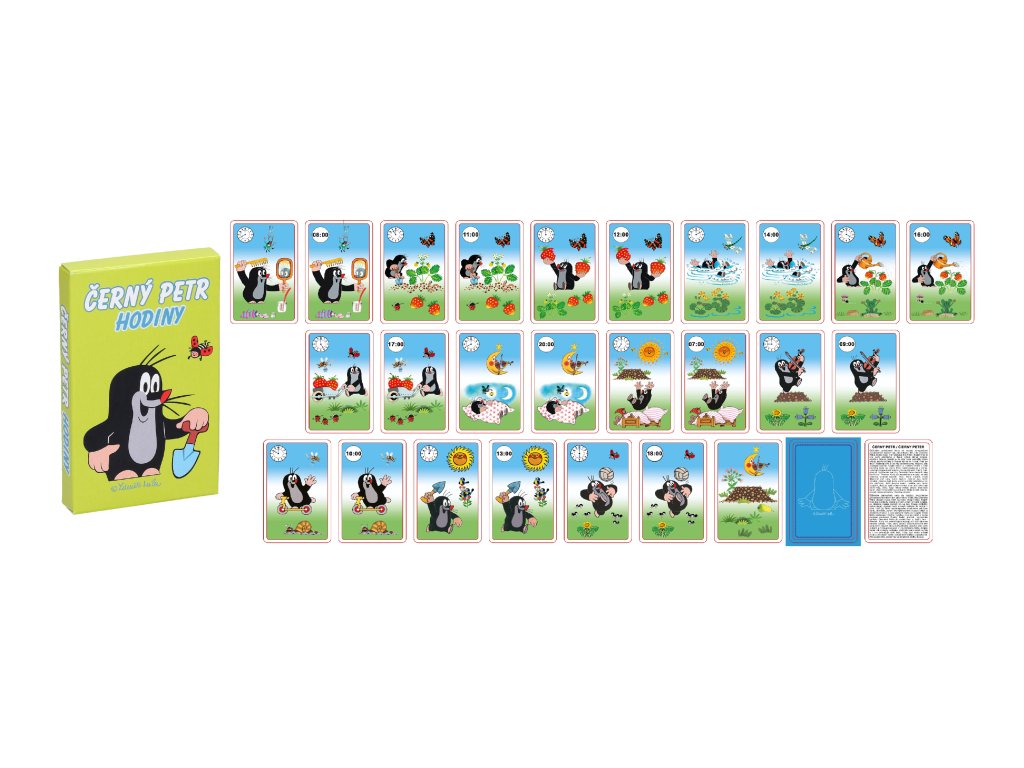 Černý Petr hodiny. Klasická kartová hra. Obsahuje 31 karet a návod. 10,5x6,5x1,5cm