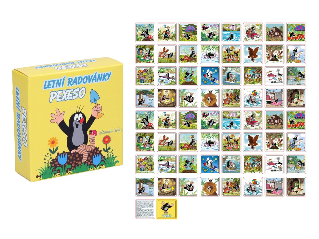 Krtek Pexeso v krabičce letní radovánky. 64 kartiček, 32 párů. Rozměr kartiček 63x63mm. Papír 350g.
