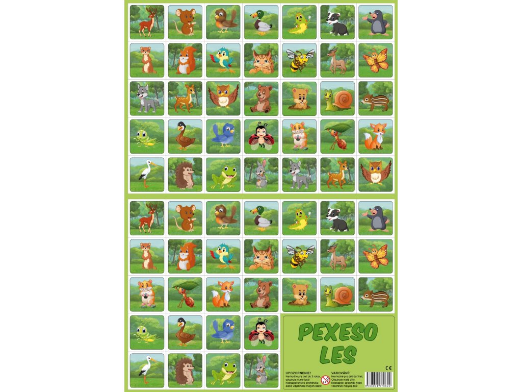 Společenská hra, při které si děti hravou formou trénují svou paměť. Hra se po rozstříhání skládá z 32 obrázkových dvojic. Pexeso 32 dvojic s obrázky kreslených zvířátek z lesa.