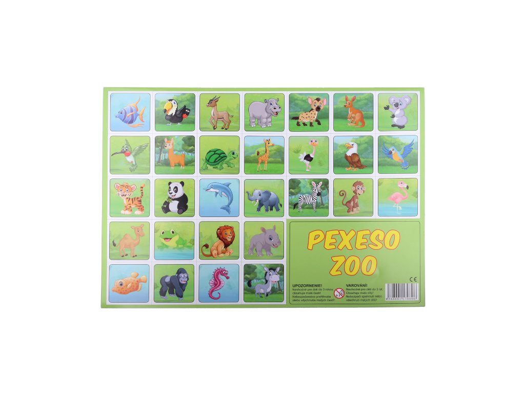 Pexeso - společenská hra, při které si děti zábavnou formou hry trénují svou paměť. Hra se skládá z 32 obrázkových dvojic s motivem zvířátek v ZOO.