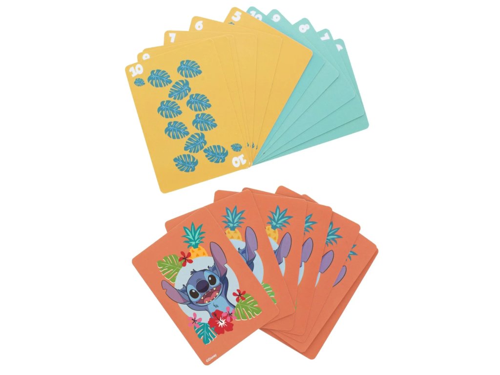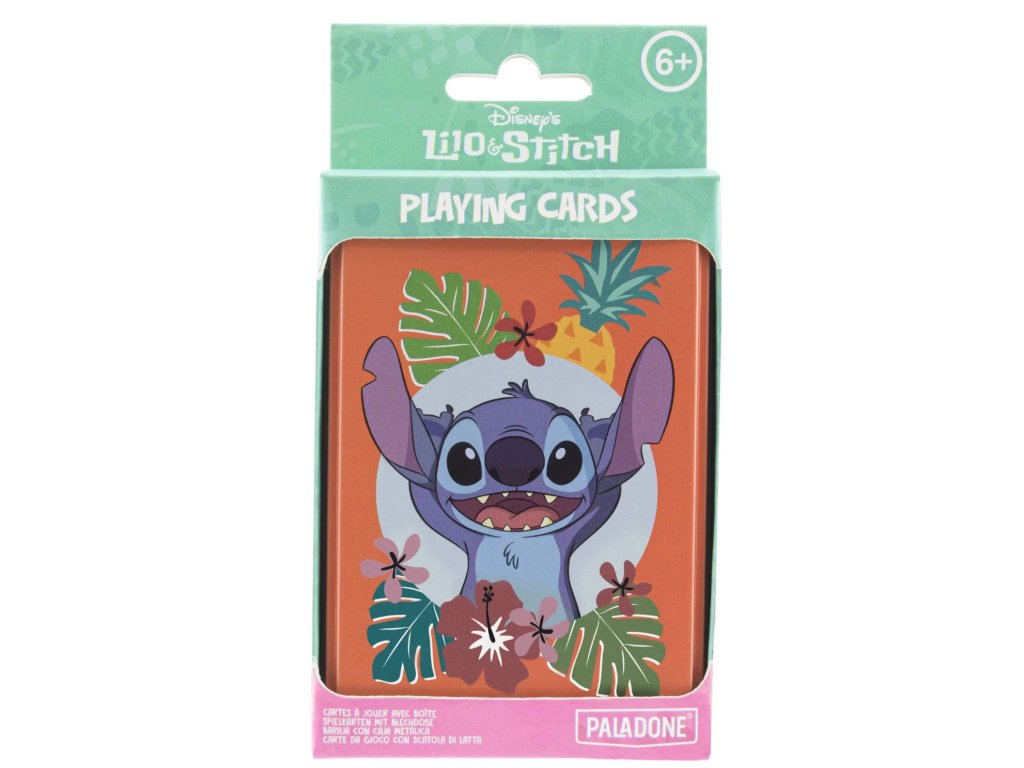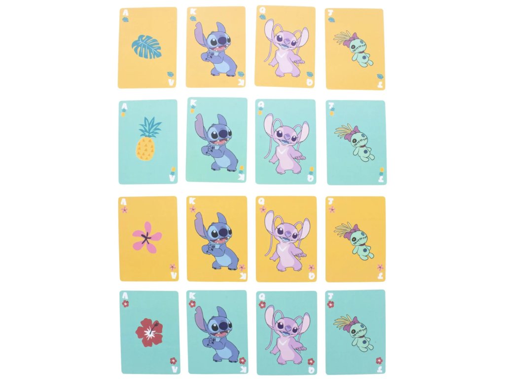 Hrací karty s grafikou postavy Stitche v různých situacích a dalších ikon z pohádky Lilo & Stitch. Krabička obsahuje 54 karet.