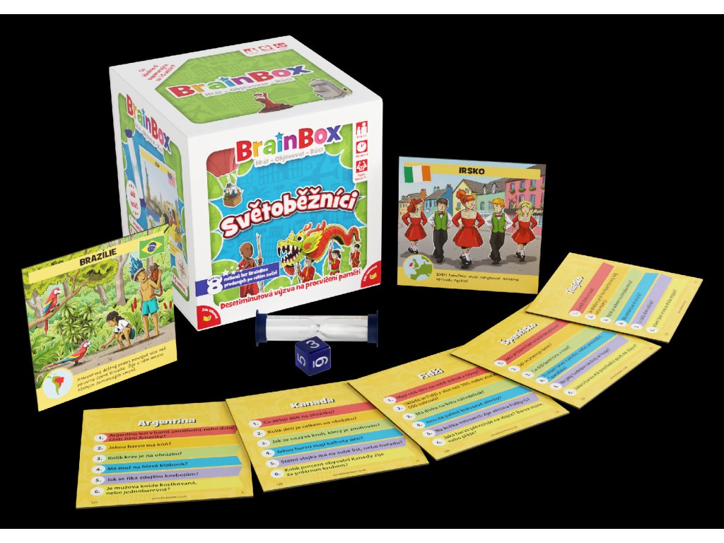 BrainBox je zábavná paměťová a postřehová karetní hra, která otestuje váš smysl pro detail. Odpovědi na všechny otázky máte přímo před sebou na kartě. Bude vám stačit 10 vteřin na to, abyste si všechno zapamatovali? Tato edice hry, věnovaná zemím z celé planety, vám představí jejich ikonická místa, zvyky a zajímavé informace. Věděli jste, že velbloudí dostihy jsou oblíbené v celém arabském světě a že někteří velbloudi se dokonce účastní i soutěží krásy? A že japonský tradiční oděv kimono doslova znamená "věc na nošení"?