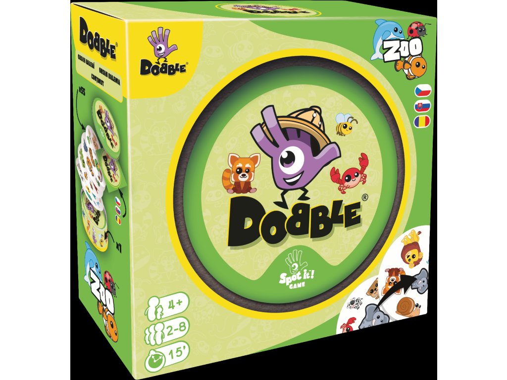 Postřehový bestseller se vrací s postavičkami a symboly zvířátek ze ZOO! Na každé kartě jich najdete 8 různých. Máte rádi zvířátka všech barev? Zahrajte si s nimi oblíbenou postřehovou hru Dobble! Hra je zaměřená na rychlost, postřeh a reflexy! Popis všech symbolů použitých ve hře najdete v pravidlech.