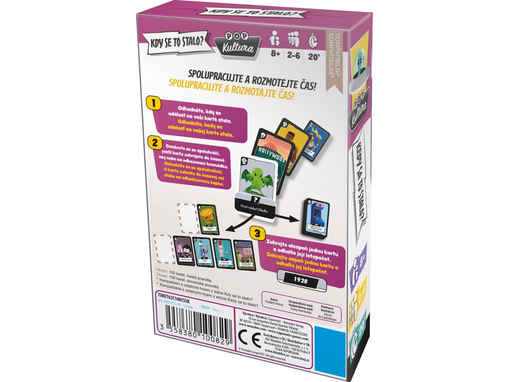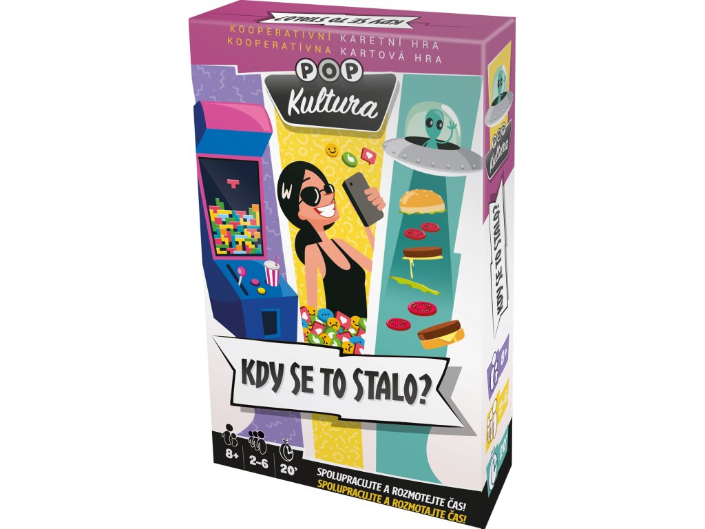 POPkultura je samostatně hratelné rozšíření hry Kdy se to stalo? Obsahuje 100 nových karet z oblasti hudby, filmu, počítačových her, známých značek, atd.