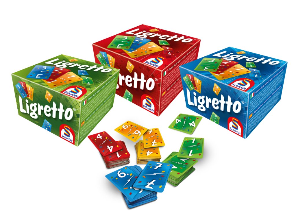 Představte si hru Ligretto ve více než čtyřech hráčích. Žádný problém – pouze se přidají další barvy. Ligretto se nabízí ve třech provedeních: modrá, zelená a červená. Pokud tato provedení spojíte, můžete hrát až ve 12 hráčích.