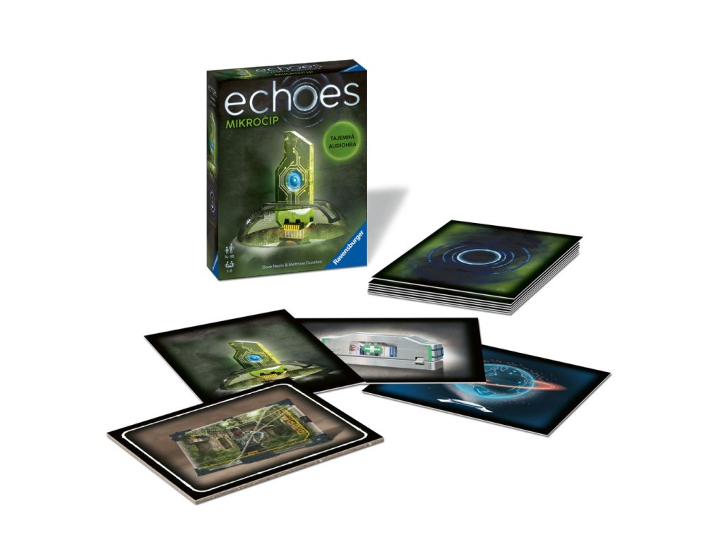 Ve hře echoes vyšetřujete záhady za použití svých speciálních schopností. Až budete zkoumat jednotlivé předměty, uslyšíte ozvěny z minulosti – tajemné zvuky a hlasy, které vám umožní odhalit tajnou historii předmětů a seřadit události do správného pořadí. Aktivujte zvukové nápovědy naskenováním karet. Poslouchejte zvuky a dialogy, které jsou propojené s herním materiálem. Najděte při poslechu všechny indicie, poskládejte je do správného pořadí a vyřešte záhadu. Ke hře je nutné stáhnout zdarma aplikaci Ravensburger echoes, která je kompletně namluvená v češtině – vypravěč Václav Neužil.