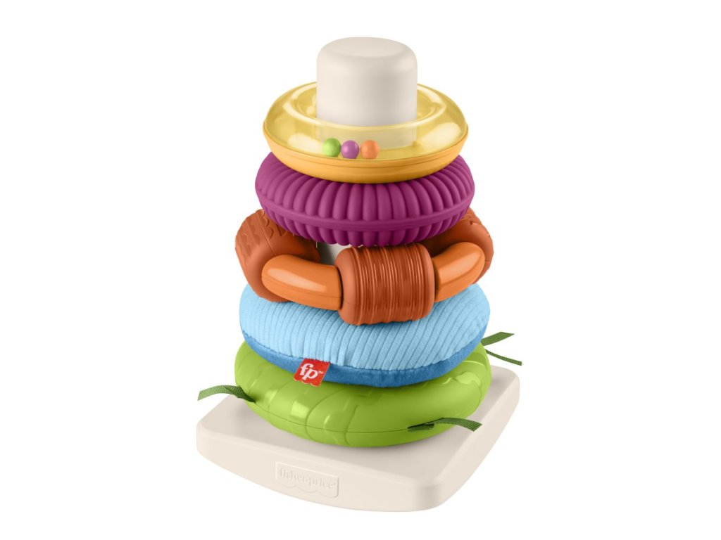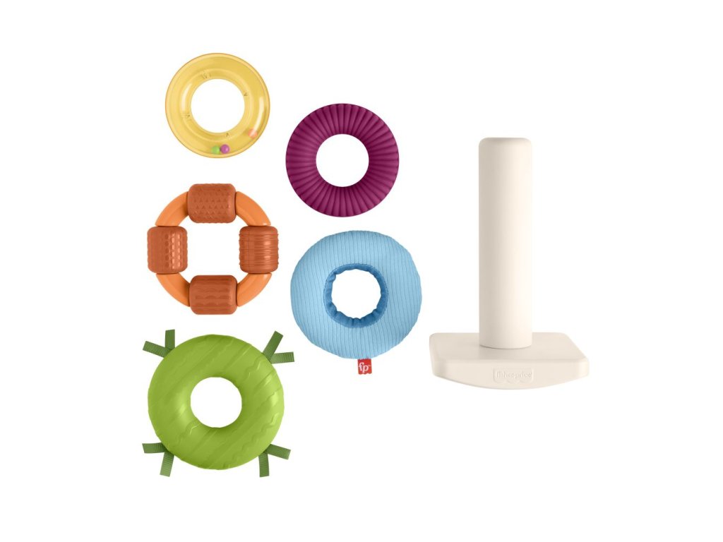Senzorická hračka od Fisher-Price® přináší do klasického skládacího modelu nový prvek zábavy. Každý z 5 barevných kroužků má různé textury, látky a značky, které zapojí a potěší smysly vašeho dítěte.