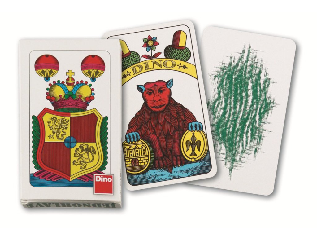 Hrací karty jednohlavé. V papírové krabičce je 32 karet a pravidla. Vhodné pro 2 - 6 hráčů od 6 let.