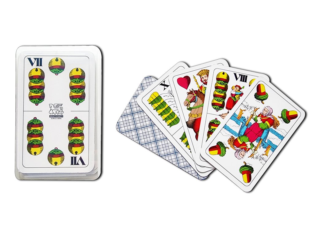 …herní sada zobrazuje na jednotlivých figurách legendu o Vilému Tellovi, obraz karet je s drobnými změnami stejný již 150 let. Obrazy jednotlivých es zobrazují roční období od jara do zimy. Károvaný revers je typický pro tuto hru. Mezi hráči je velmi oblíbený pro svoji praktičnost.
