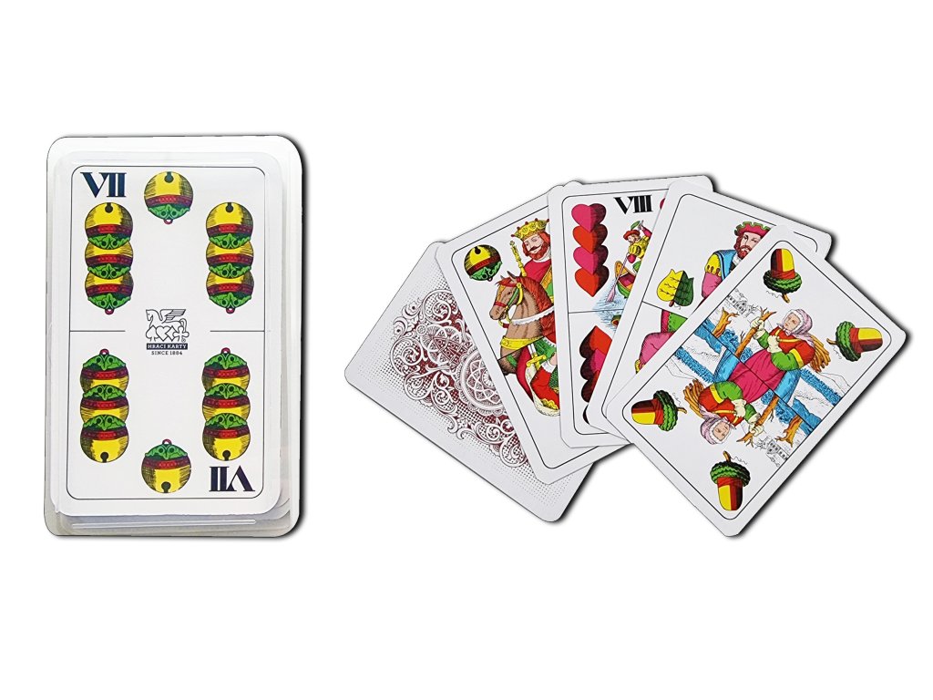 …herní sada zobrazuje na jednotlivých figurách legendu o Vilému Tellovi, obraz karet je s drobnými změnami stejný již 150 let. Obrazy jednotlivých es zobrazují roční období od jara do zimy. Hra zachovává oblíbený revers ve tvaru krajky.