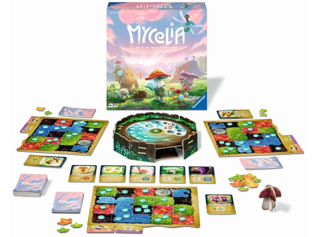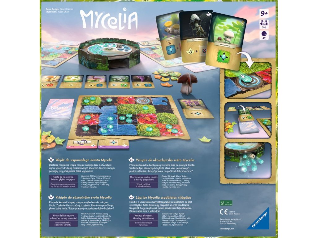 Obsah: 100 karet, 4 herní desky, 1 svatyně života, 1 značka začínajícího hráče, 4 zásobovací karty, 2 žetony svatyně, 4 stavební karty, 14 akčních karet, 72 lístečků, 80 kapek rosy, 1 kostka, 1 pravidla hry