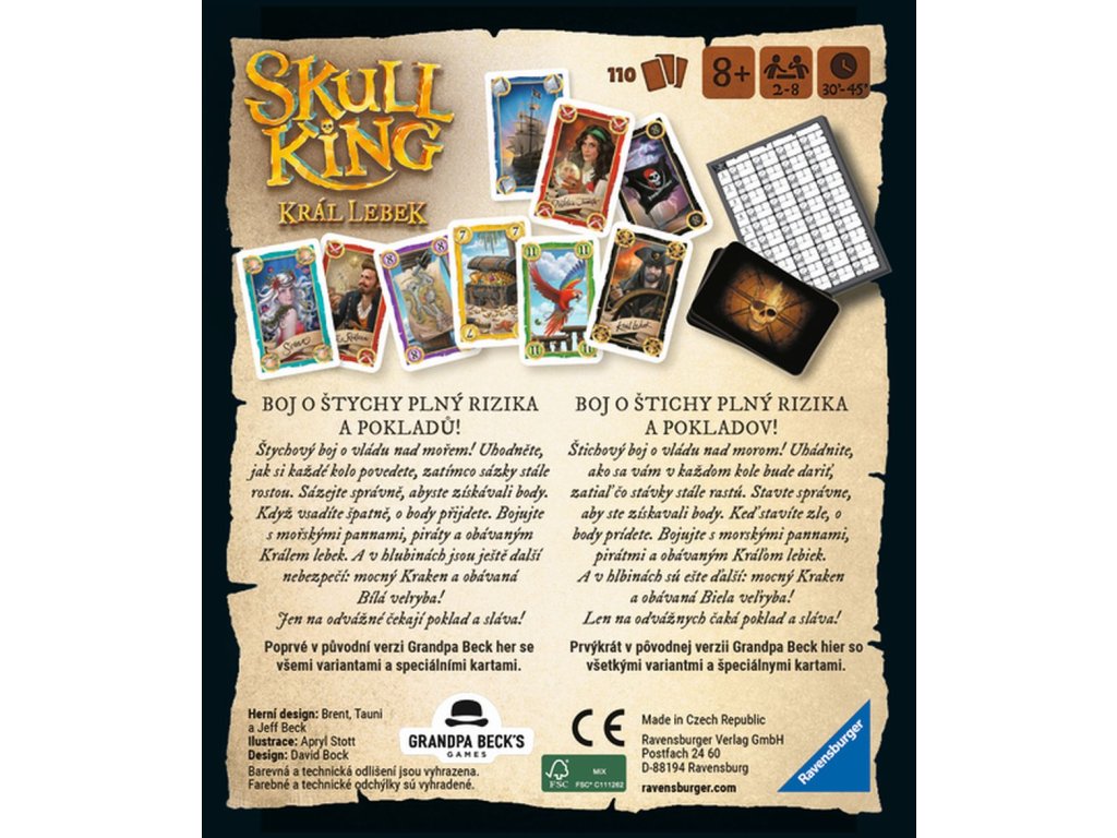 Štychový boj o vládu nad mořem! Uhodněte, jak si každé kolo povedete, zatímco sázky stále rostou. Sázejte správně, abyste získávali body. Když vsadíte špatně, o body přijdete. Bojujte s mořskými pannami, piráty a obávaným Králem lebek. A v hlubinách jsou ještě další nebezpečí: mocný Kraken a obávaná Bílá velryba!