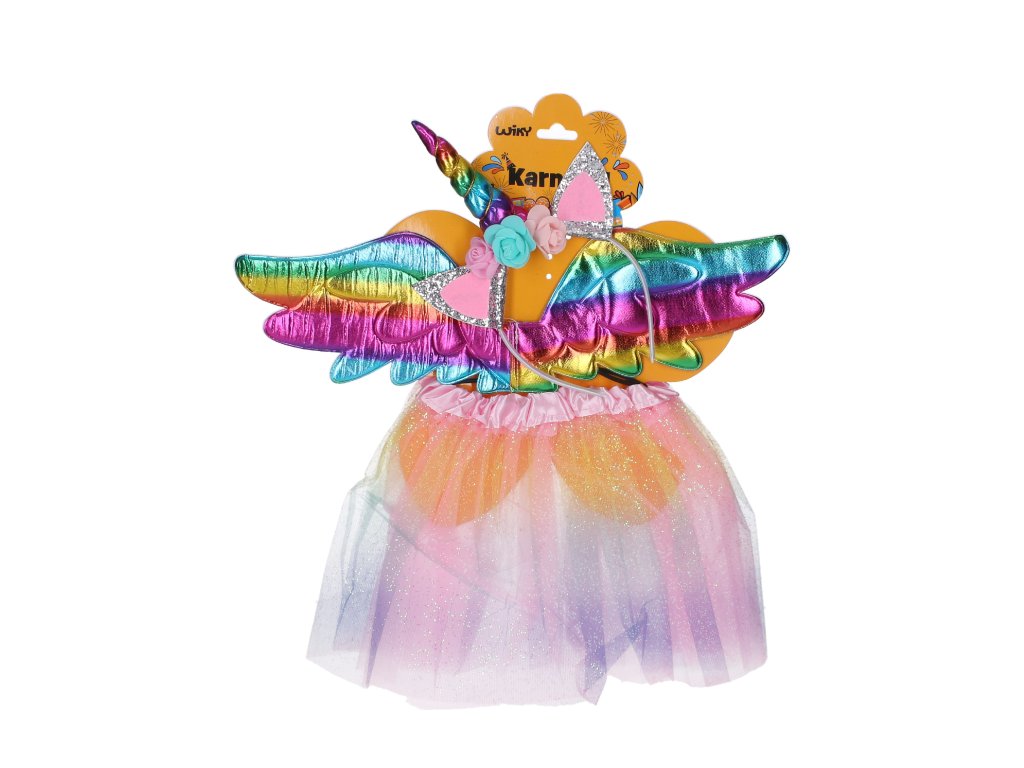 Set karneval jednorožec. Set obsahuje čelenku jednorožec, křídla, sukni.