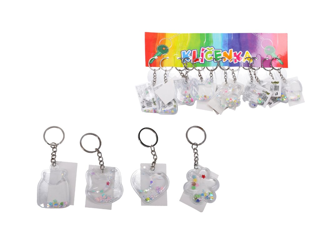 Klíčenka akrylová s glitrem a tekutinou - Mix motivů.