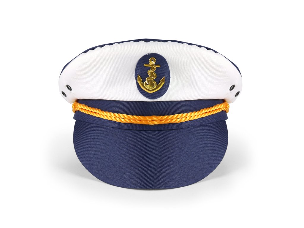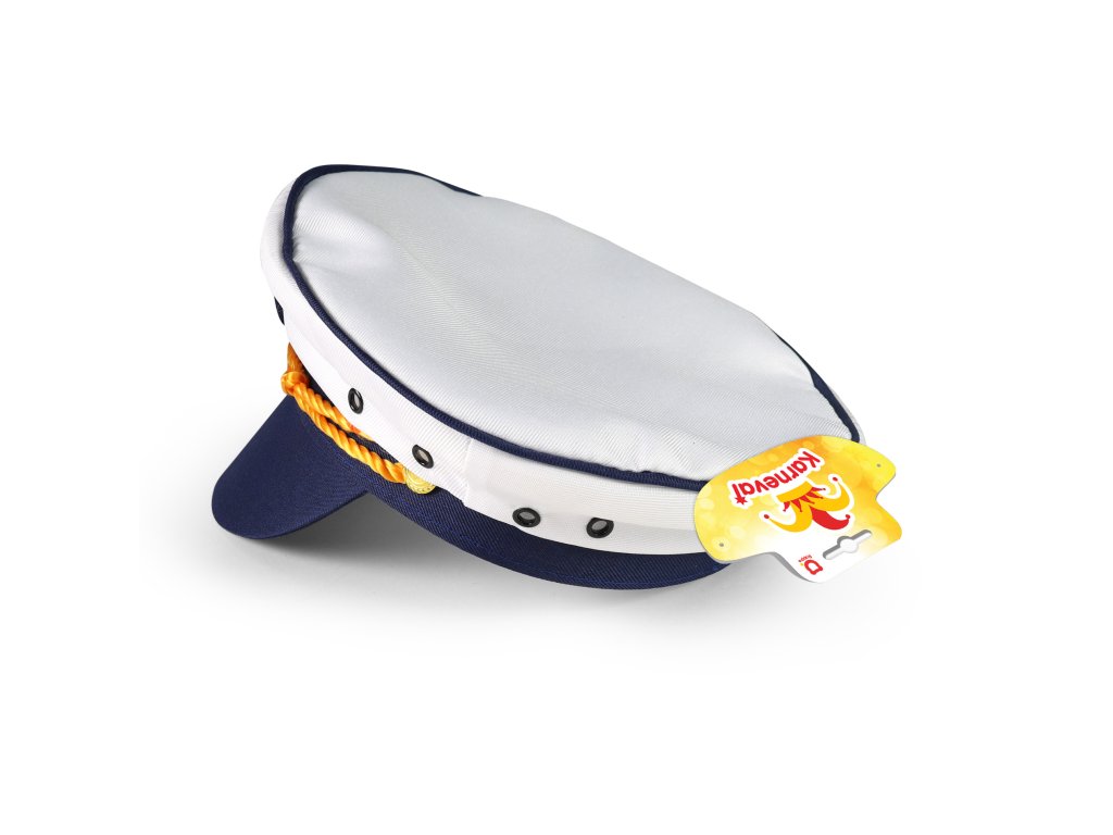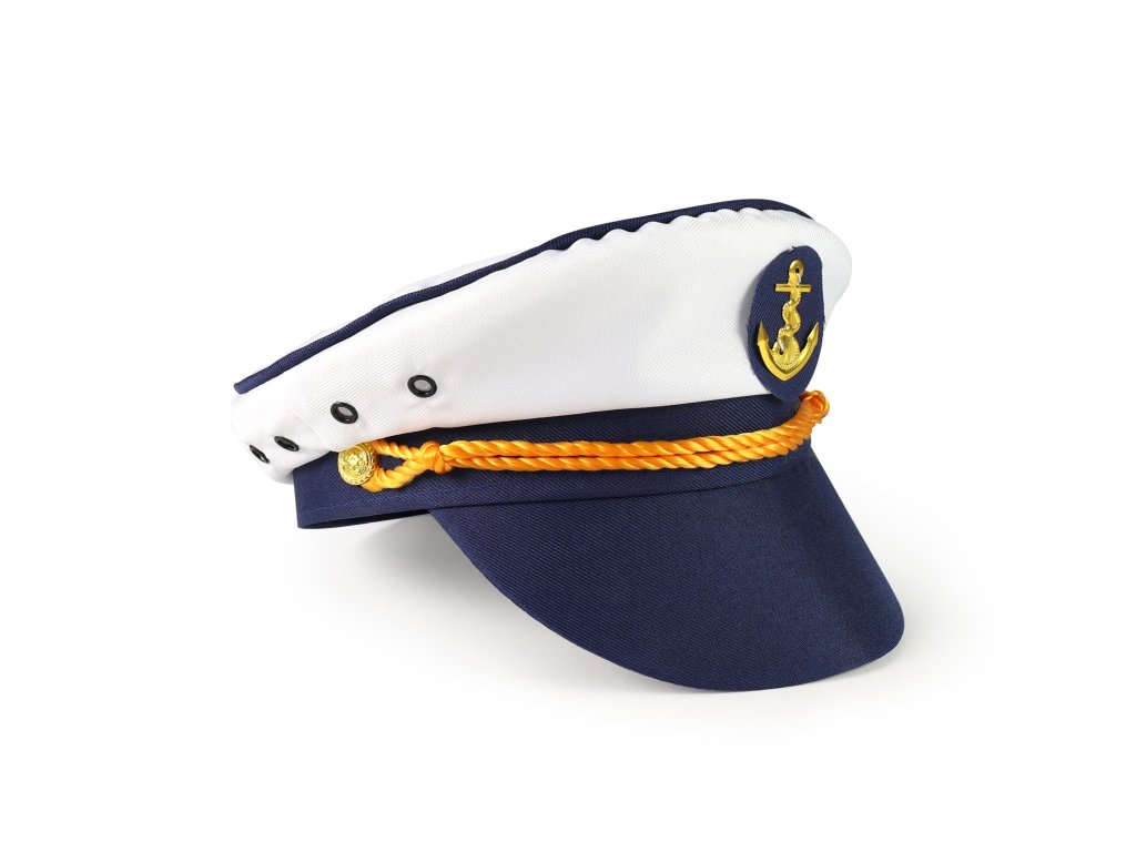 Parádní bílá čepice s modrým kšiltem a lemováním ve stylu námořníka pro dospělé! Tento senzační kousek je zdoben zlatým odznakem na přední straně čepice. Staňte se hvězdou karnevalového večírku díky této nepřehlédnutelné čepici a ohromte tak všechny své přátele!