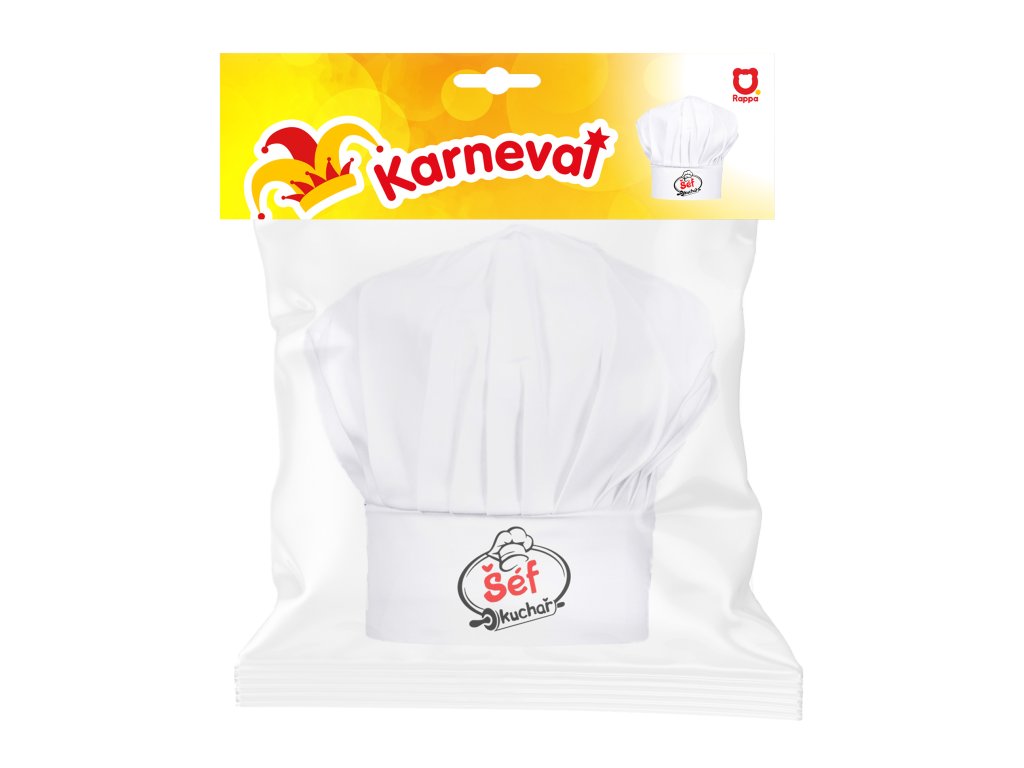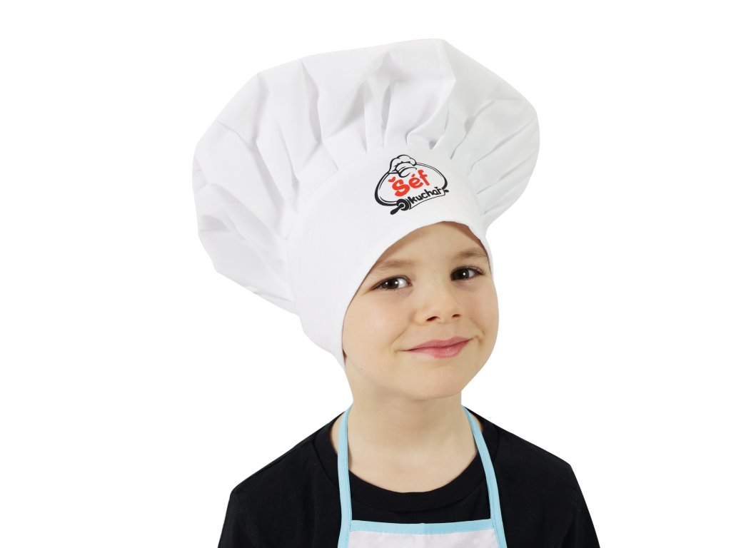Kuchařská čepice s nápisem "Šéf kuchař" je nezbytným doplňkem hlavy každého malého pomocníka v kuchyni! Tento stylový kousek nesmí žádnému malému kuchaři při vaření chybět!