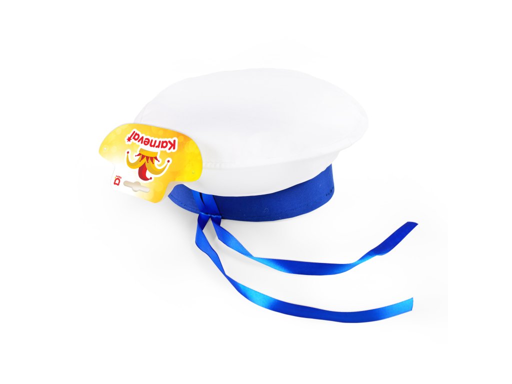 Stylová námořnická čepice pro malé námořníky! Tento parádní kousek je zdoben saténovou stuhou a bílým nápisem na přední straně.
