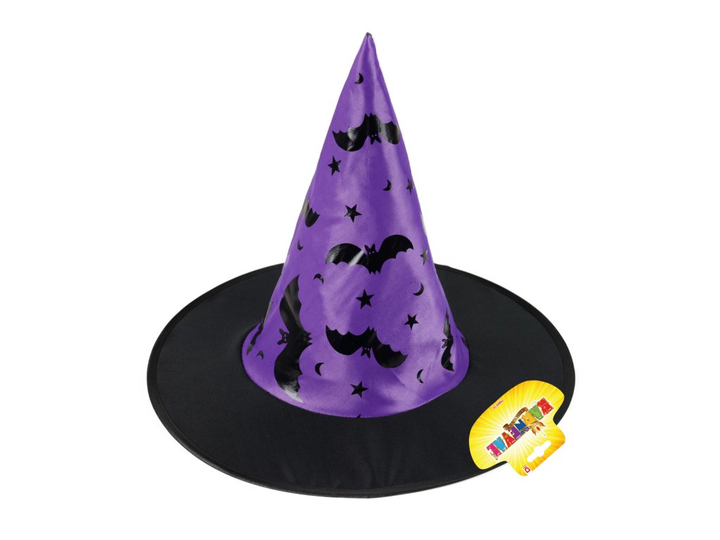 Úžasný čarodějnický klobouk s potiskem ve tvaru netopýrů. Ideální na halloweenský večírek nebo karneval!