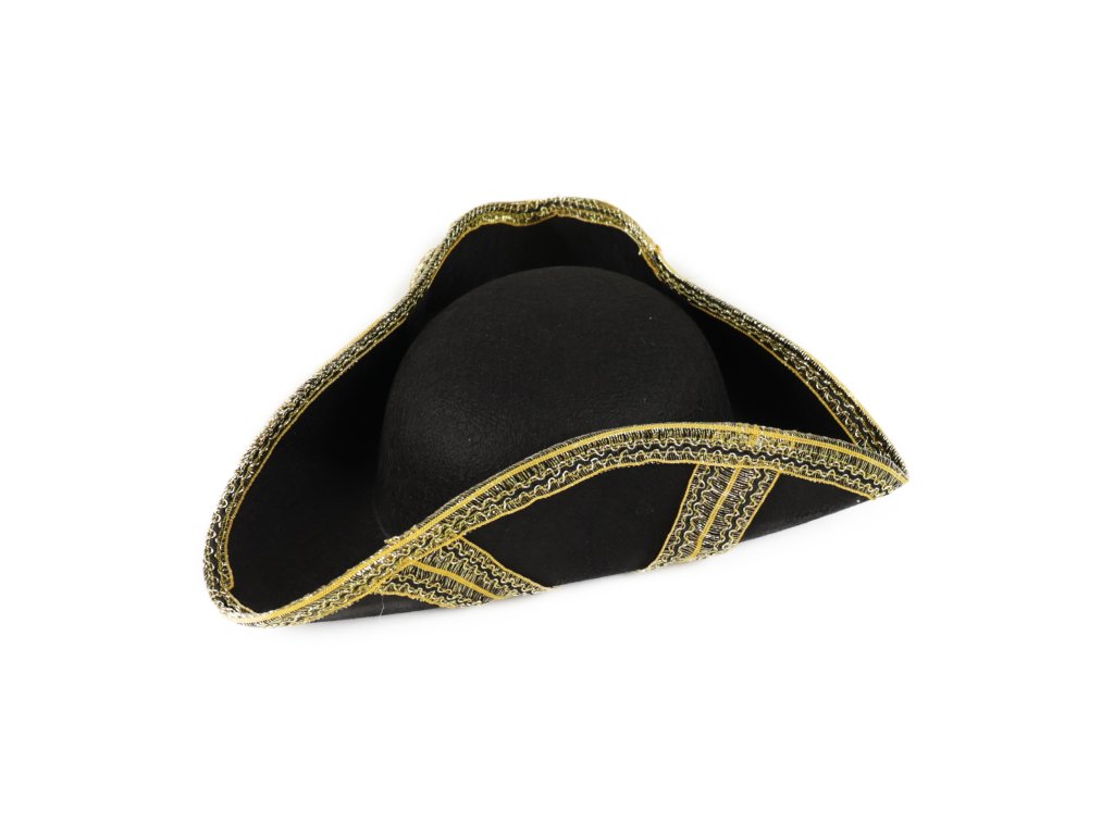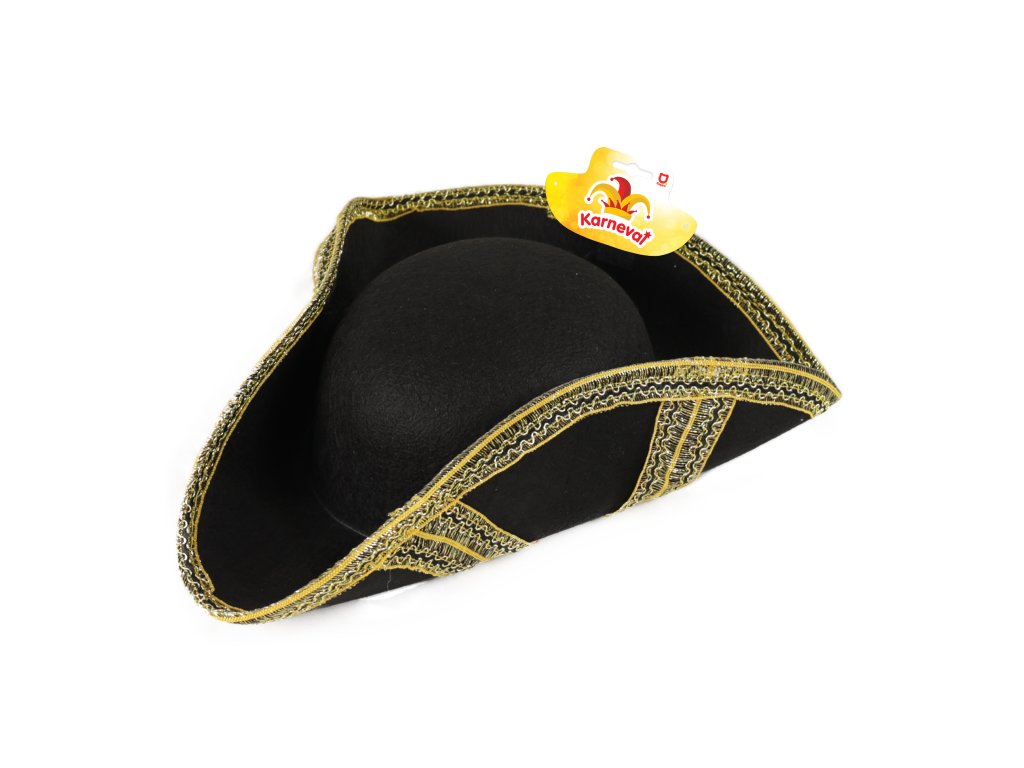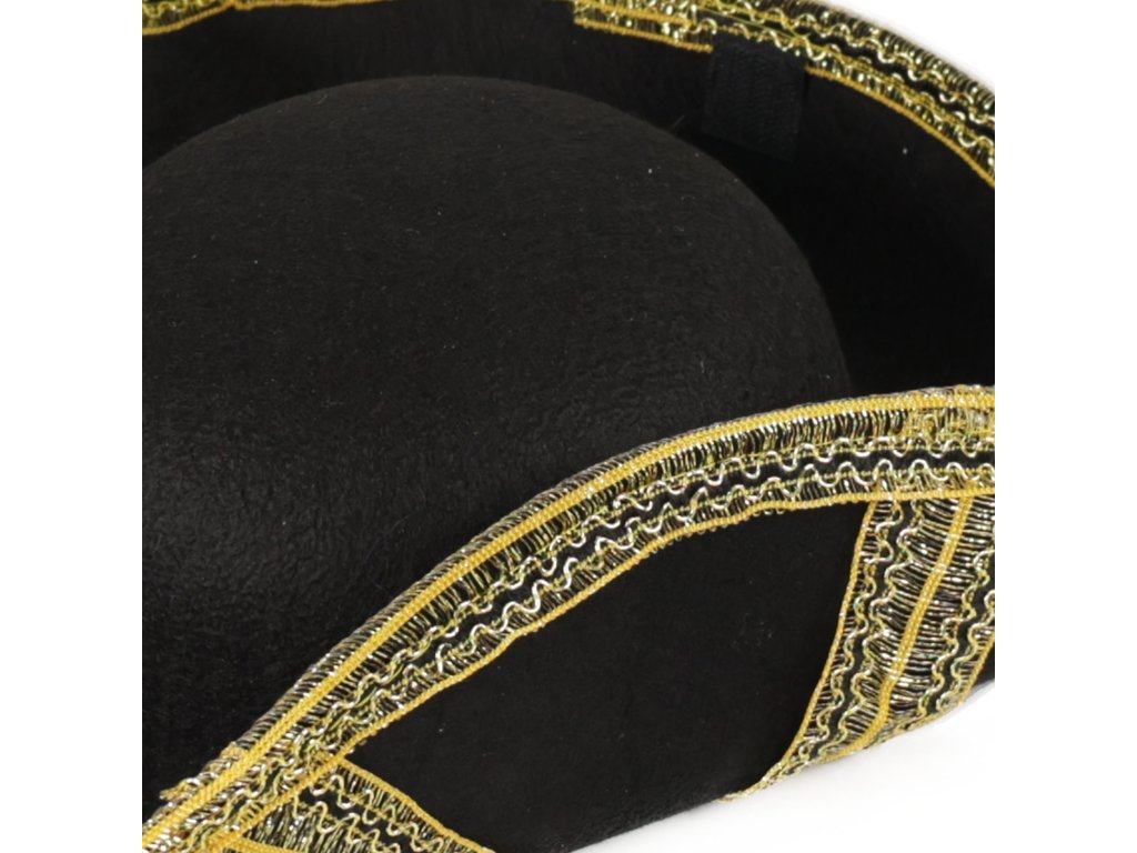 Krásný klobouk jako pro opravdové piráty! Tento černý elegán o průměru 20 cm je určen pro dospělé a je zdoben zlatým lemováním. Perfektní doplněk ke kostýmu piráta!