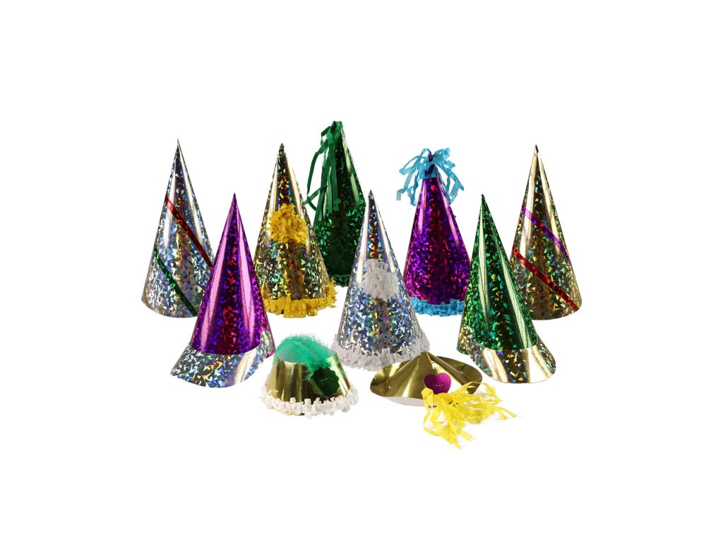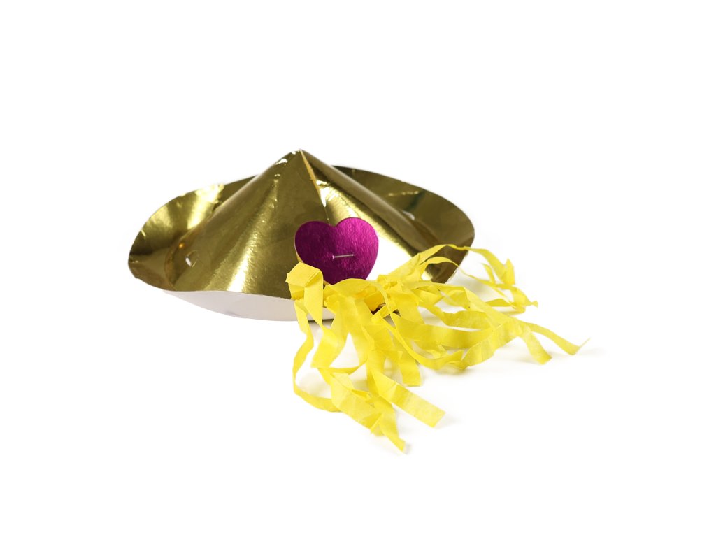 Barevné metalické papírové čepičky jsou senzačním doplňkem na oslavu, večírek nebo ples! Tyto kloboučky na gumičku nabízíme v různých barvách s kšiltem nebo krepatými střapečky. Prodejné pouze v balení po 25 kusech. Velikost kloboučku cca 23 cm.