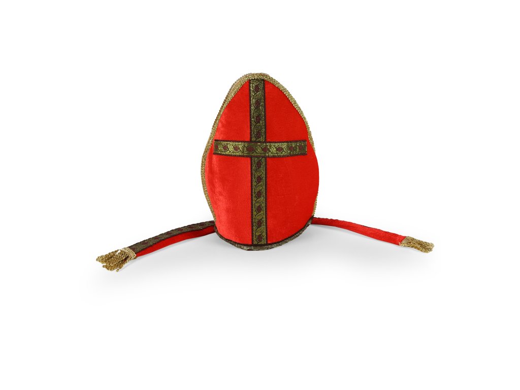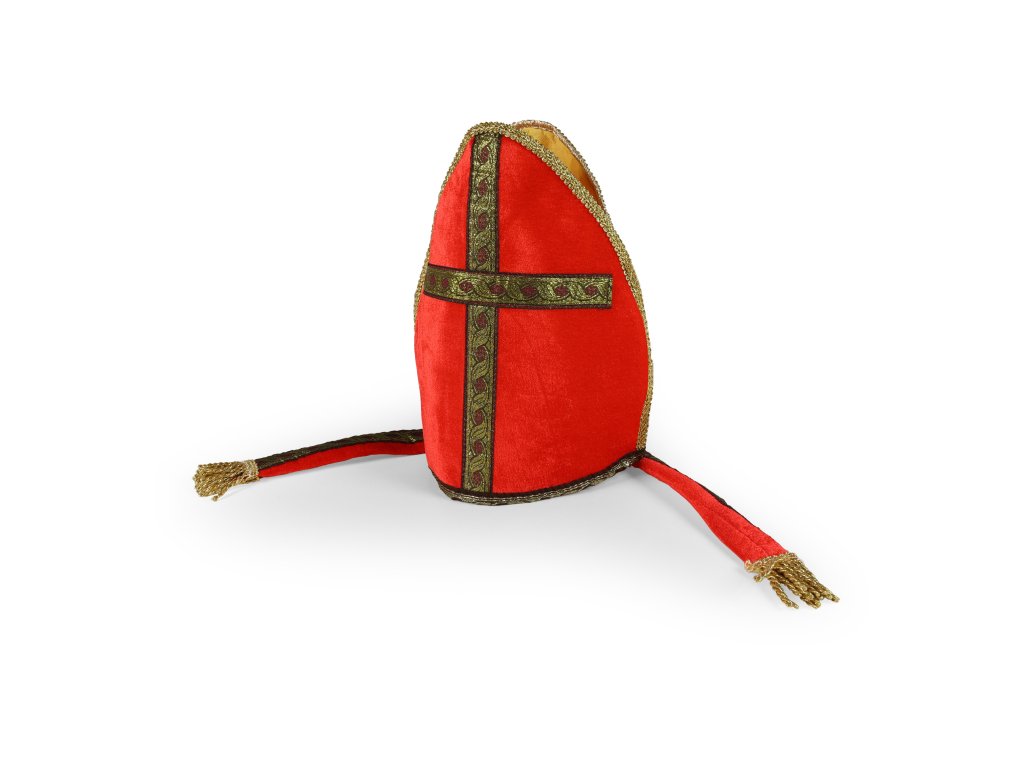 Látková čepice pro opravdové Mikuláše! Čepice je vyrobena z filcu a dekorována zlatým vyšíváním. Ideální doplněk k vašemu kostýmu!