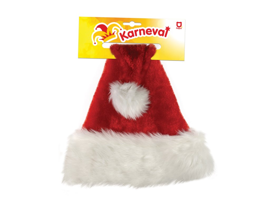 Klasická červená vánoční čepice s bílým lemem a bambulkou je ideálním doplňkem pro vánoční období, jak ke kostýmu, tak i pro domácí pohodu. Hebký plyšový materiál zajistí pohodlné nošení a sváteční vzhled.