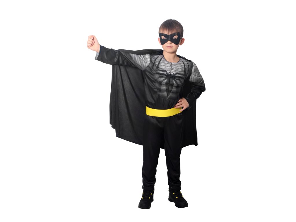 Úchvatný kostým ve stylu pavoučího bojovníka nesmí ve tvé karnevalové sbírce chybět! Kostým ve velikosti M je určen pro chlapečky ve věkovém rozmezí 6-8 let (117-128 cm). Balení obsahuje černo-šedý overal se znakem pavouka na hrudi a je doplněn černým odnímatelným pláštěm a látkovou škraboškou.