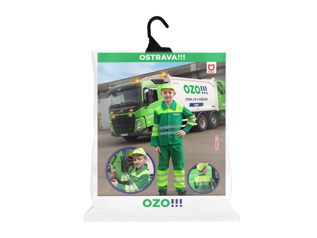 Být popelářem byl v dětství sen skoro každého malého chlapce! S tímto exkluzivním dětským kostýmem se v něj proměníte během chvilky! Sada obsahuje blůzu s nápisem OZO!!!, kalhoty a čepici, vše s reflexními pruhy. Kostým velikosti M je určen pro chlapečky ve věkovém rozmezí 6-8 let (116-128 cm).