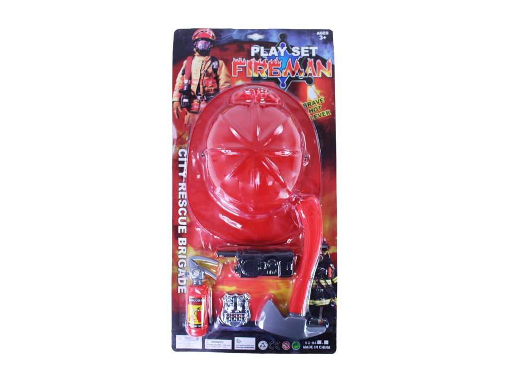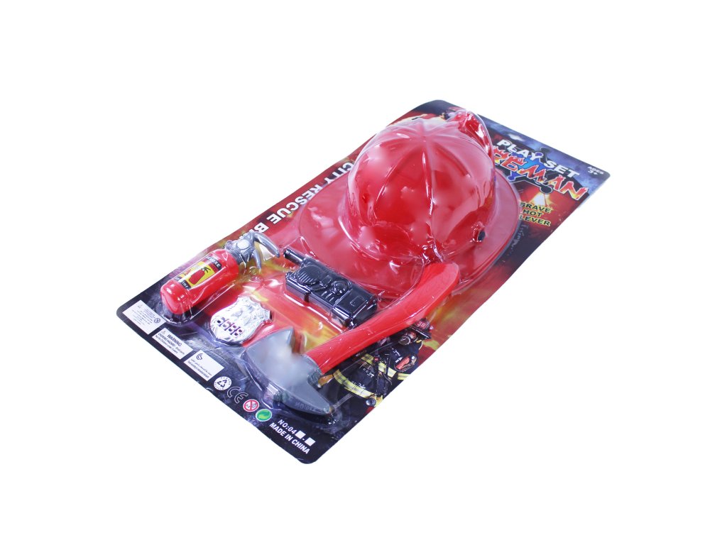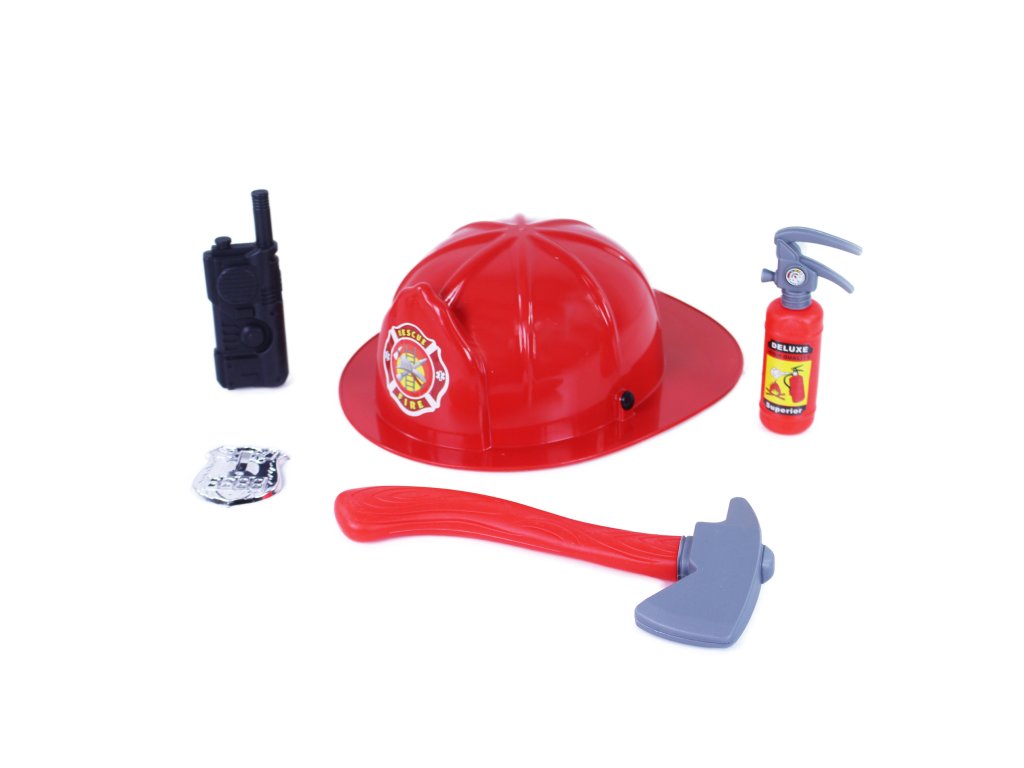 Vzhůru do záchranářské akce! Helma, hasičská sekera, hasicí přístroj, vysílačka a odznak, to vše se ti bude při hašení hodit! Všechny doplňky jsou vyrobeny z PVC.