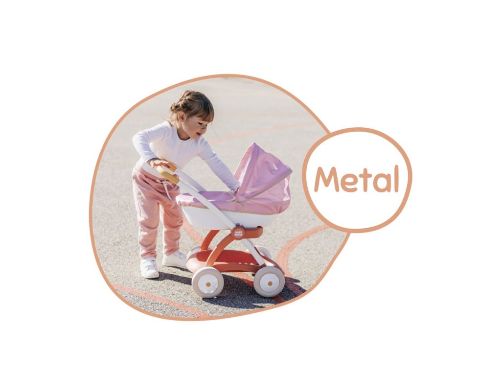 Kočárek Baby Nurse s vysoce kvalitním kovovým rámem a odolnou látkou. Se skládací boudičkou. Kočárek je speciálně navržen pro menší děti od 18 měsíců a je obzvláště robustní a odolný díky kombinovanému kvalitnímu kovoplastovému rámu. Při zatažené obloze lze skládací střechu volitelně složit. Kočárek pro panenky se snadno čistí díky speciální látce: stačí namočit houbičku do trochy vody a jemně otřít. Vhodné pro všechny panenky do 42 cm. Balení bez panenky. Rozměry produktu (DxŠxV): 59 x 38 x 58 cm. Výška rukojeti: 58 cm.