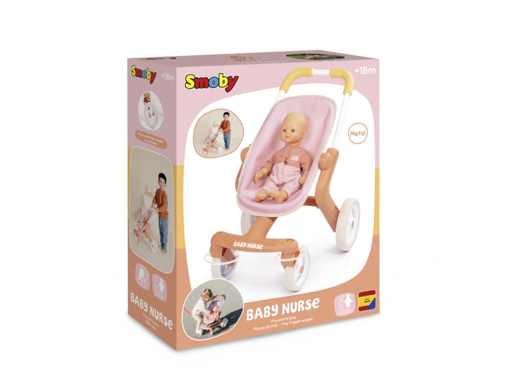 Kočárek pro panenky Smoby Baby Nurse s 360° předními koly pro snadné řízení. Plastový rám u kočárku je velmi lehký a tudíž snadno ovladatelný. Díky snadno udržovatelnému plastu a speciální tkanině se kočárek snadno čistí: jednoduše namočte houbu do trochy vody a pečlivě vyčistěte. Vhodné pro panenky do 42 cm (panenka není součástí balení). Rozměry produktu (DxŠxV): 49 x 38 x 53 cm.