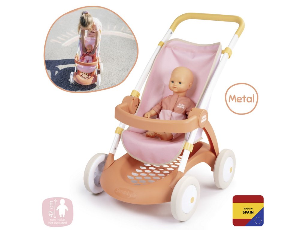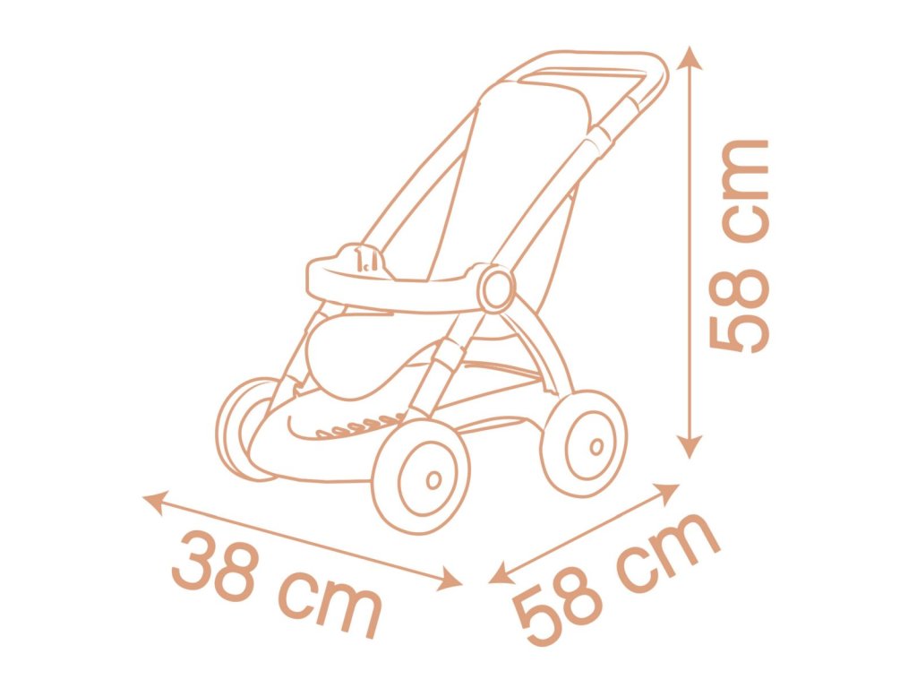 Sportovní trendy kočárek pro panenky z řady Baby Nurse v kouzelných oblíbených barvách. Vhodné pro všechny panenky do 42 cm. Panenka není součástí balení. Vysoce kvalitní a robustní kovový rám zajišťuje odolnost a stabilitu. Díky speciální tkanině se vozík snadno čistí: jednoduše ponořte houbu do trochy vody a pečlivě vyčistěte. S praktickým úložným prostorem pod sedákem. Výška k rukojeti 58 cm. Rozměry (DxŠxV): 58 x 58 x 38 cm.