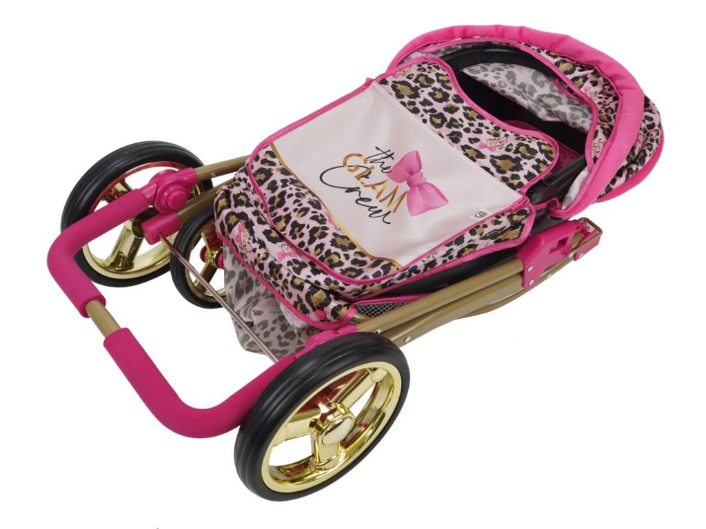 Tento luxusní kočárek je ideální pro panenky do velikosti 53 cm. Rozměry kočárku jsou cca 67,5 x 40,5 x 74 cm. Součástí kočárku je stříška, kryt korbičky a spodní velký nákupní košík do kterého se vejde plno potřebných věcí. Kočárek má odnímatelnou korbičku pro lepší manipulaci a přenášení panenky, výškově nastavitelnou rukojeť a otočné přední kola. Kola nelze zaaretovat. Kočárek se dá jednoduše složit. Vhodné pro děti od 3 let.