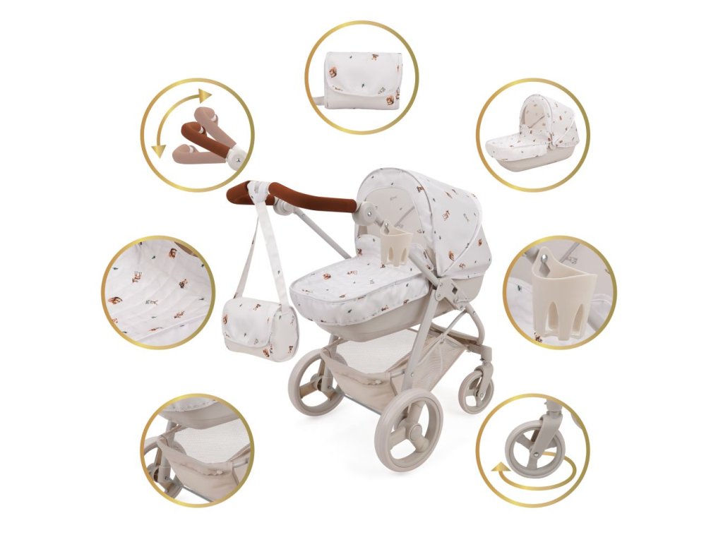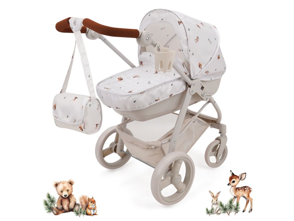 Kočárek pro panenky Bella 2v1 s taškou - Woodland